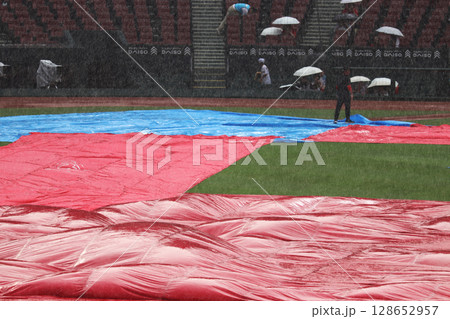 雷雨のため試合見合わせ