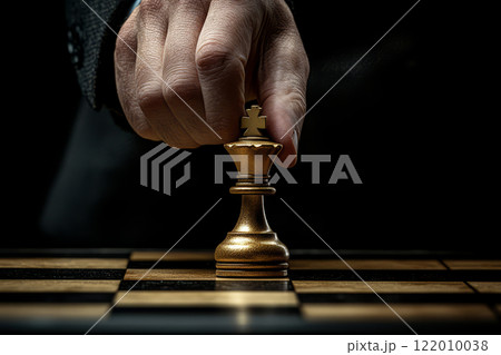 The image depicts a hand moving a chess piece, emphasizing strategy and gameplay.