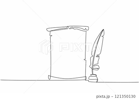 Single one line drawing A sheet of old paper rolled up in a standing position. History is written through language. Light but meaningful. World Poetry Day. Continuous line design graphic illustration