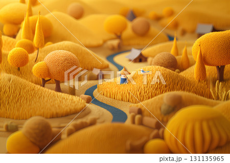 色彩あふれる幻想の山水風景(中国風アート背景)