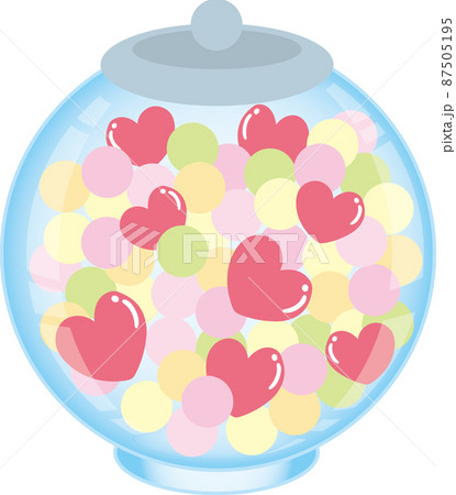 ハートとキャンディーが詰まったキャンディーポット