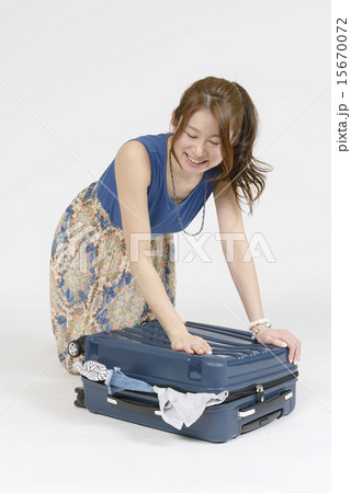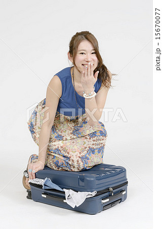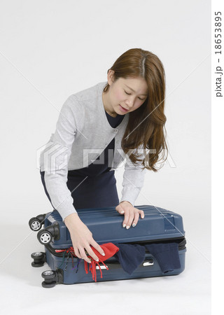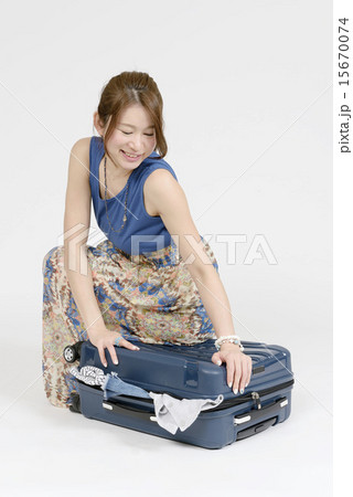 スーツケースに荷物を入れる女性