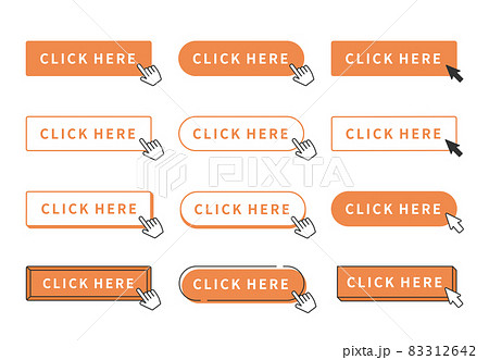 シンプルなボタンフレームのイラストセット テンプレート バナー オレンジカラーバージョン
