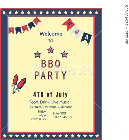 BBQ party invitation. 4th of july.