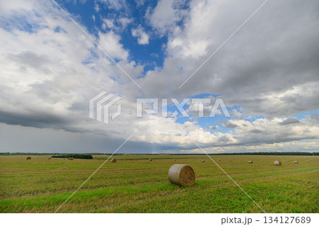 A Vast and Expansive Agricultural Field Set Against a Dramatic and Beautifully Cloudy Sky Above