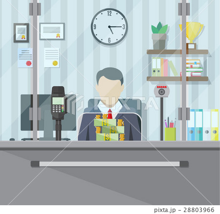 cashier women at cash desk financial consulting center with waiting room reception and atm modern