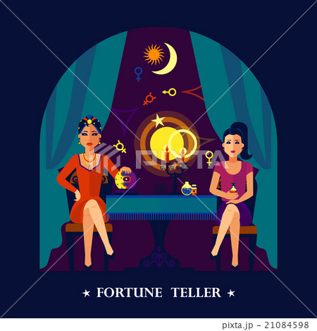 Female fortune tellers use tarot cards and oracle crystal ball to predict future