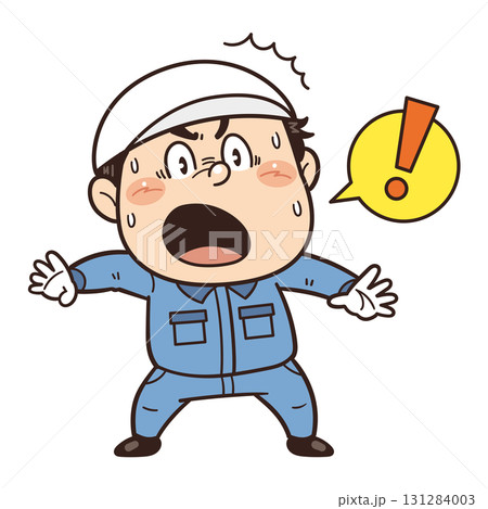 工場や現場で働く男性作業員が焦ってびっくりしているイラスト|不安全行動・不安全状態・労働災害