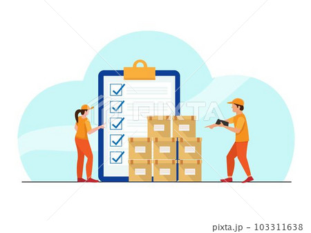 warehouse worker checking inventory Concept of inventory control system. Flat vector illustration.
