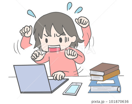 勉強しながら疑問を持つ女性のイラストフレーム