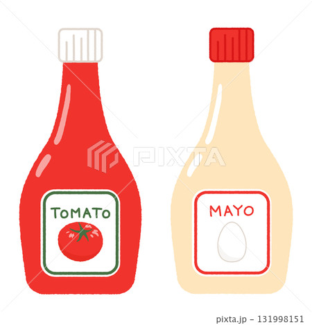 トマトケチャップとマヨネーズのかわいいイラスト