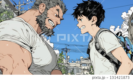 親子喧嘩:青年男子の息子と父親がいがみ合っている