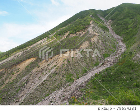 初夏のスガモリ越え避難からみた三俣山登山道 大分県玖珠郡九重町田野