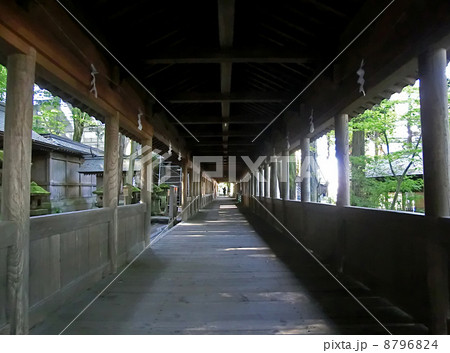 信州 諏訪 諏訪大社 諏訪神社の総本山 上社本宮 入口御門の入口と廊下 横