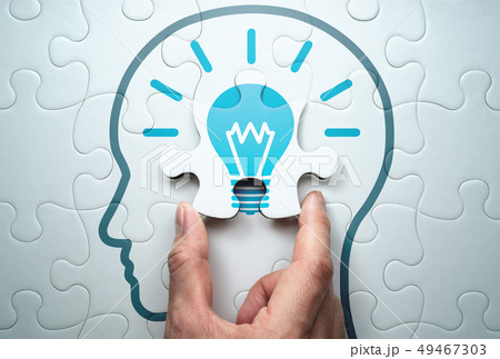 論理的なアイディアのイメージ。パズルの最後の1ピースをはめる。