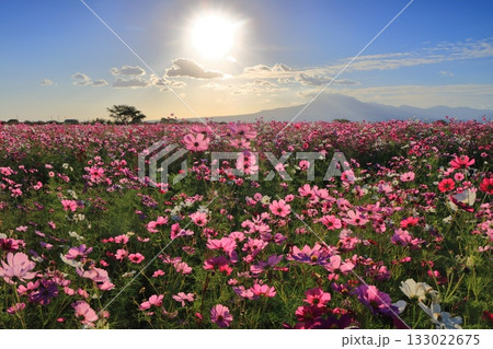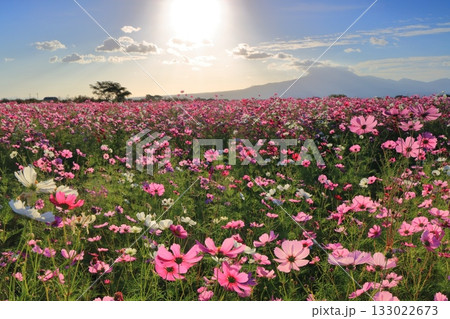 【長崎県】自然干陸地フラワーゾーンのコスモスと朝日