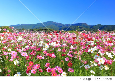 【長崎県】快晴の自然干陸地フラワーゾーンの満開のコスモス