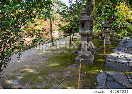 秋の諸戸氏庭園 秋の一般公開 灯篭と水路(三重県桑名市)