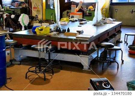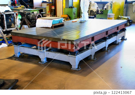 内部応力を十分に緩和させた鋳鉄で作られ表面を精密に仕上げた… 大型の『定盤』