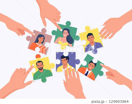 Business company is looking for employee. People connecting puzzle pieces, build team, hiring employees. Teamwork and collaboration. Open vacancy, partnership
