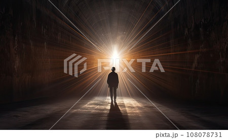 AI生成画像 トンネルの中の明るい光に立つ、一人の後ろ姿