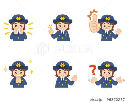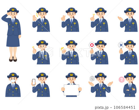女性警察官 表情とジェスチャーのイラスト素材セット