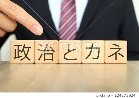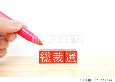 赤いブロックに書かれた総裁選の文字とコピースペース