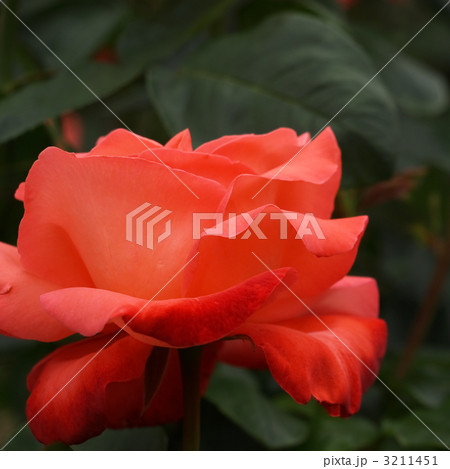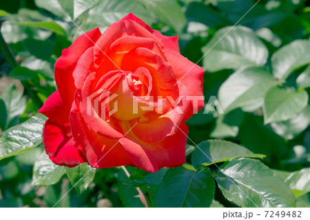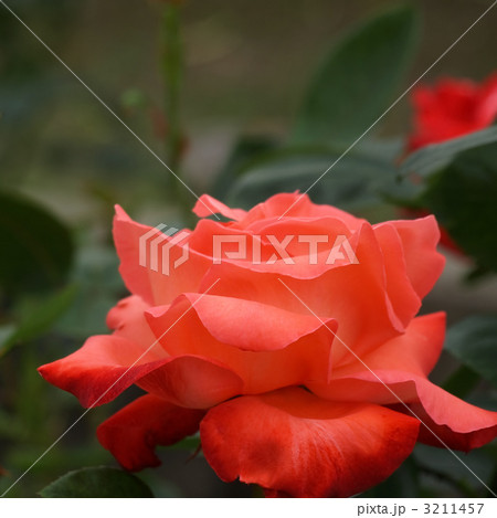 谷津バラ園の鮮やかな朱赤のバラの花・讃歌