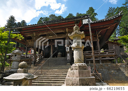 岐阜県揖斐川町 新緑の谷汲山華厳寺の本堂へ上がる階段