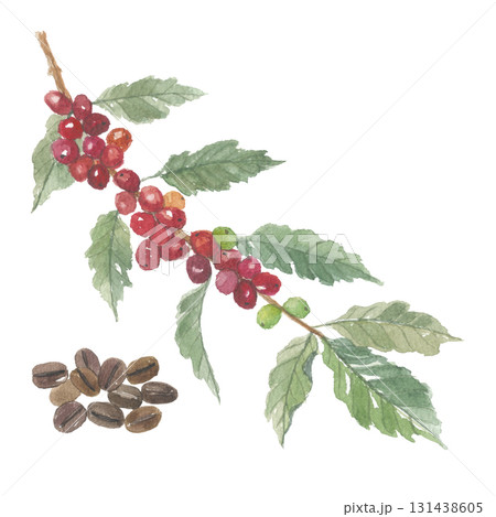 手描き水彩で描いたフレッシュな葉付き黒大豆(枝豆)のイラスト 白バック