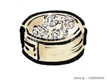 蒸篭に入っている焼売の和風筆イラスト素材