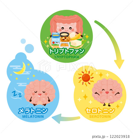 脳と腸のキャラクターと良質な睡眠サイクルのイラスト