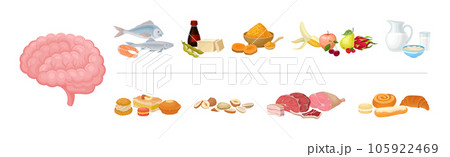 Good and Bad Food Category and Nutrition Group for Brain Function Vector Set