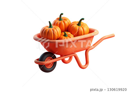 3d wheelbarrow overflowing with ripe orange pumpkins, abundant autumn harvest, thanksgiving abundance, homegrown vegetable harvest for fall decorating