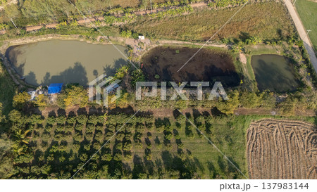 Aerial view of agriculture field in rural Thailand. Thailand has been a successful agricultural society due to the country's well-endowed natural resources, from diverse crops to farming and fisheries