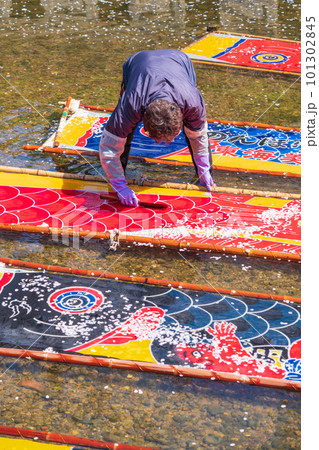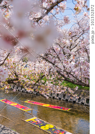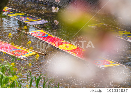 春の五条川、のんぼり洗い〈愛知県岩倉市〉