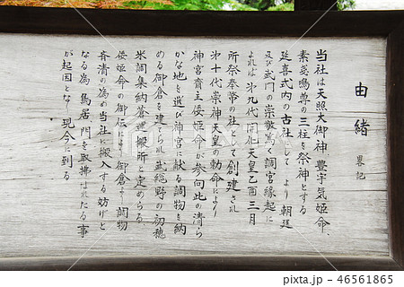 調(つき)神社の由緒書き(さいたま市浦和区)