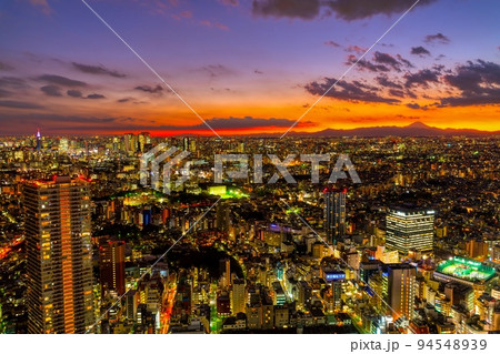 日本の東京都市景観 富士山や丸ノ内線、青空が広がる池袋や新宿。東京都庁や山々なども見える珍景