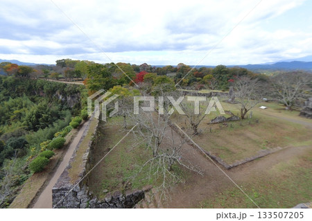 岡城 高石垣と鐘櫓跡、西中仕切跡方面の景色(大分県竹田市)
