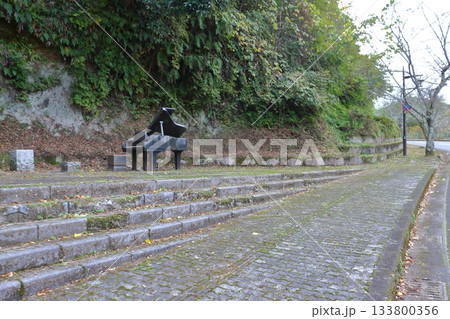 岡城へ続く道路(歩道)のピアノ モニュメント(大分県竹田市)