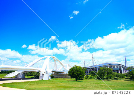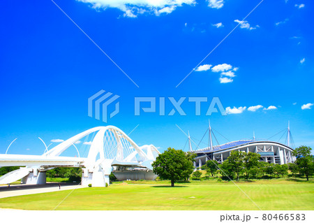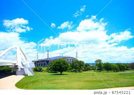 愛知県豊田市、豊田スタジアムと豊田大橋の風景