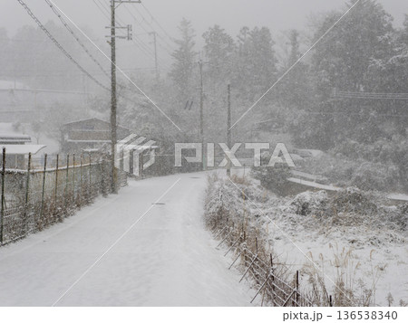 雪が降る里山の道路