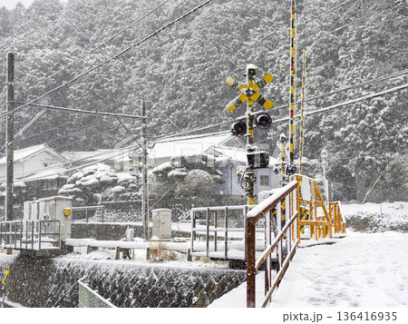 雪が積もる能勢電鉄妙見線の妙見口駅