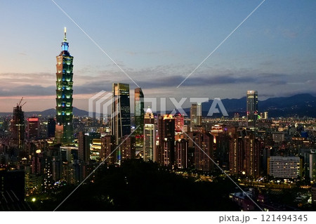 象山摂手平台から見る台北101と信義区の夕景 台湾 台北市