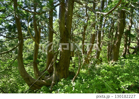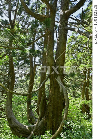 【新潟県・佐渡・大黒杉】日本海の風雪にもまれ奇抜な姿をした大佐渡石名天然杉 6月