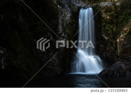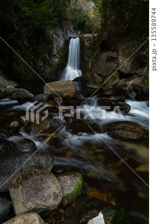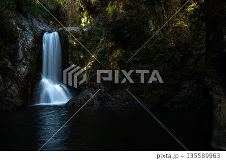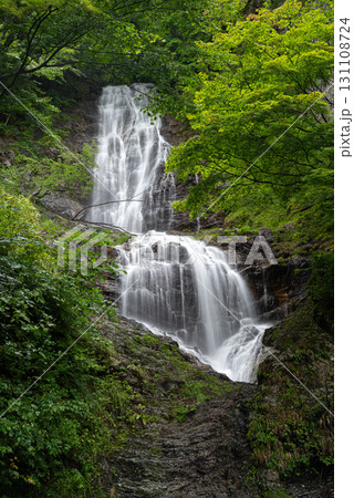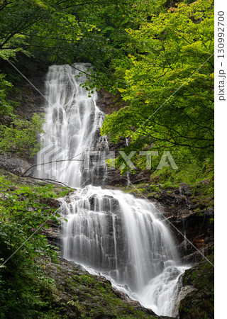 新緑の森と美しい滝 唐沢の滝