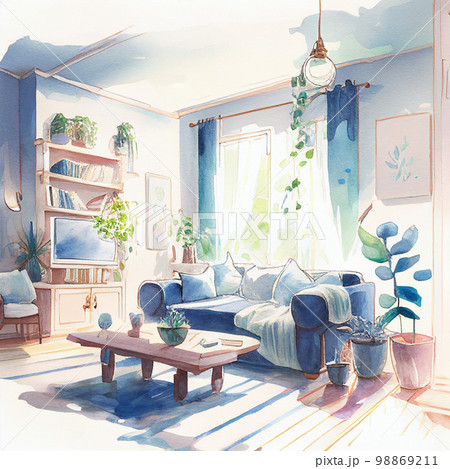 テーマカラーのあるおしゃれなリビングルーム AI画像