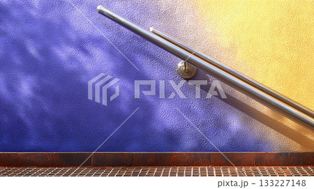 Modern Shower Area With Colorful Walls and Stainless Steel Handrail Designed for Safety and Style