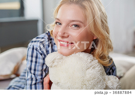 Young woman rider with her horse in evening sunset light. Outdoor photography in lifestyle mood