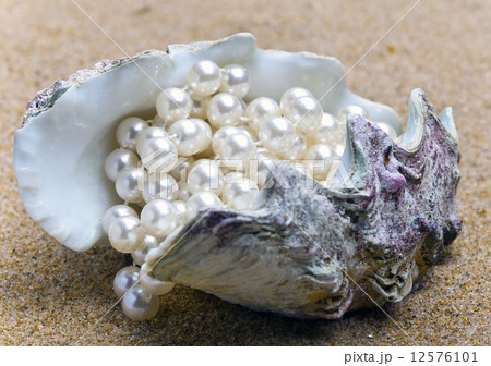 真珠とアコヤガイ 真珠貝 パール イメージ素材 真珠養殖
